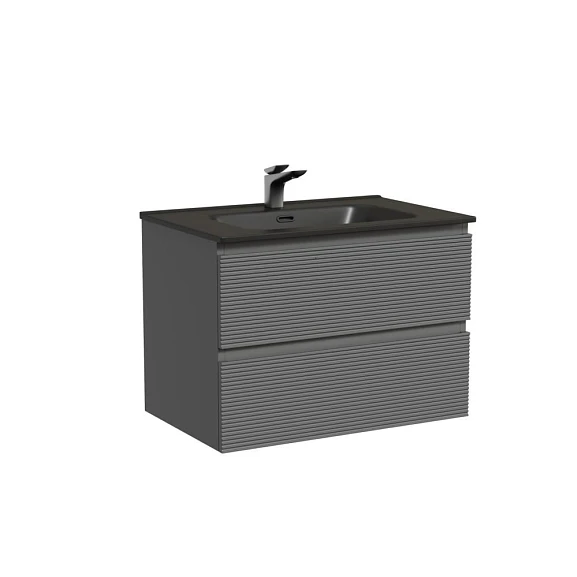 Тумба с раковиной Sancos Folk 70 Grey soft (раковина Element CN7007MB черная матовая)
